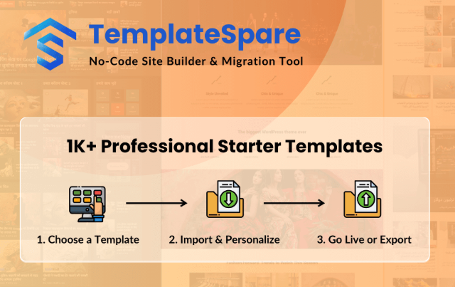 - Choose a Site – Explore a rich selection of over 350+ pre-built websites. With a single click, import the one that resonates with your vision.